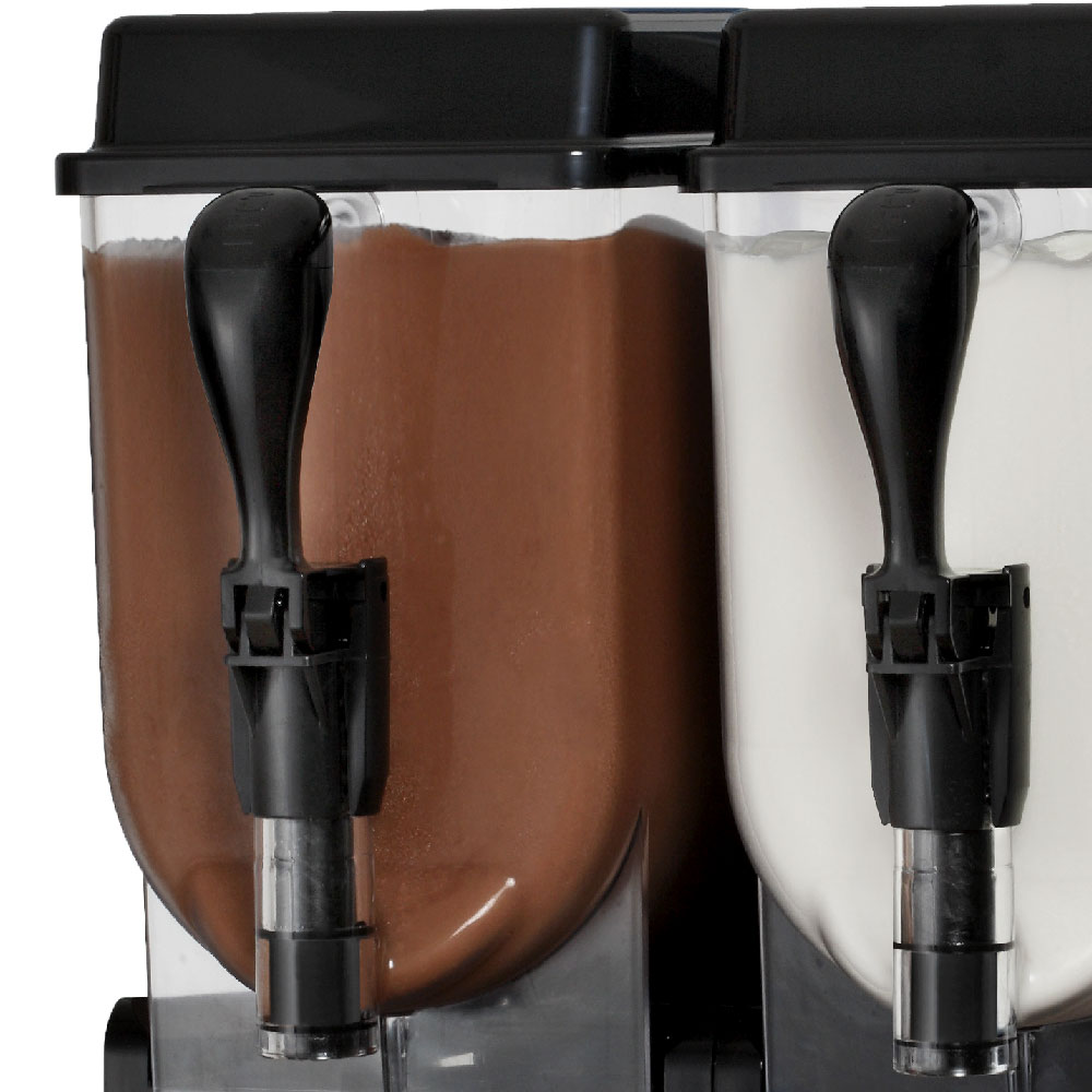 Sorby 2 je savršen za one koji žele ponuditi sorbete i granite i imaju smanjene potrebe za prostorom. Zahvaljujući svojoj kompaktnoj veličini, može se staviti u bilo koju vrstu okruženja i omogućava vam pripremu izvrsnih proizvoda. Sadržu dva spremnika, kapaciteta 10 litara gotovog proizvoda. Sve komponente u kontaktu s proizvodom mogu se rastaviti bez alata kako bi se olakšao postupak čišćenja. Briga u izboru materijala i dizajnu pretvaraju ga u komad namještaja i stila zahvaljujući zaobljenim oblicima, oblogama od nehrđajućeg čelika i slavini za zatvaranje.